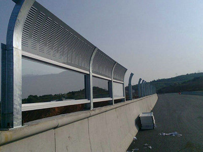 高速声屏障采用彩钢板,下部为隔声板,上部为吸声板,带小弧度。外表美观,性价比...